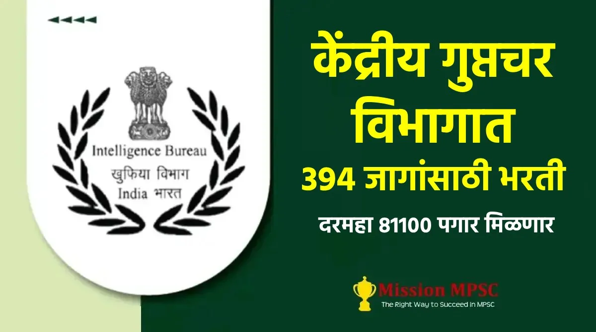 केंद्रीय गुप्तचर विभागात नवीन 394 जागांसाठी भरती ; दरमहा 81100 पगार मिळणार